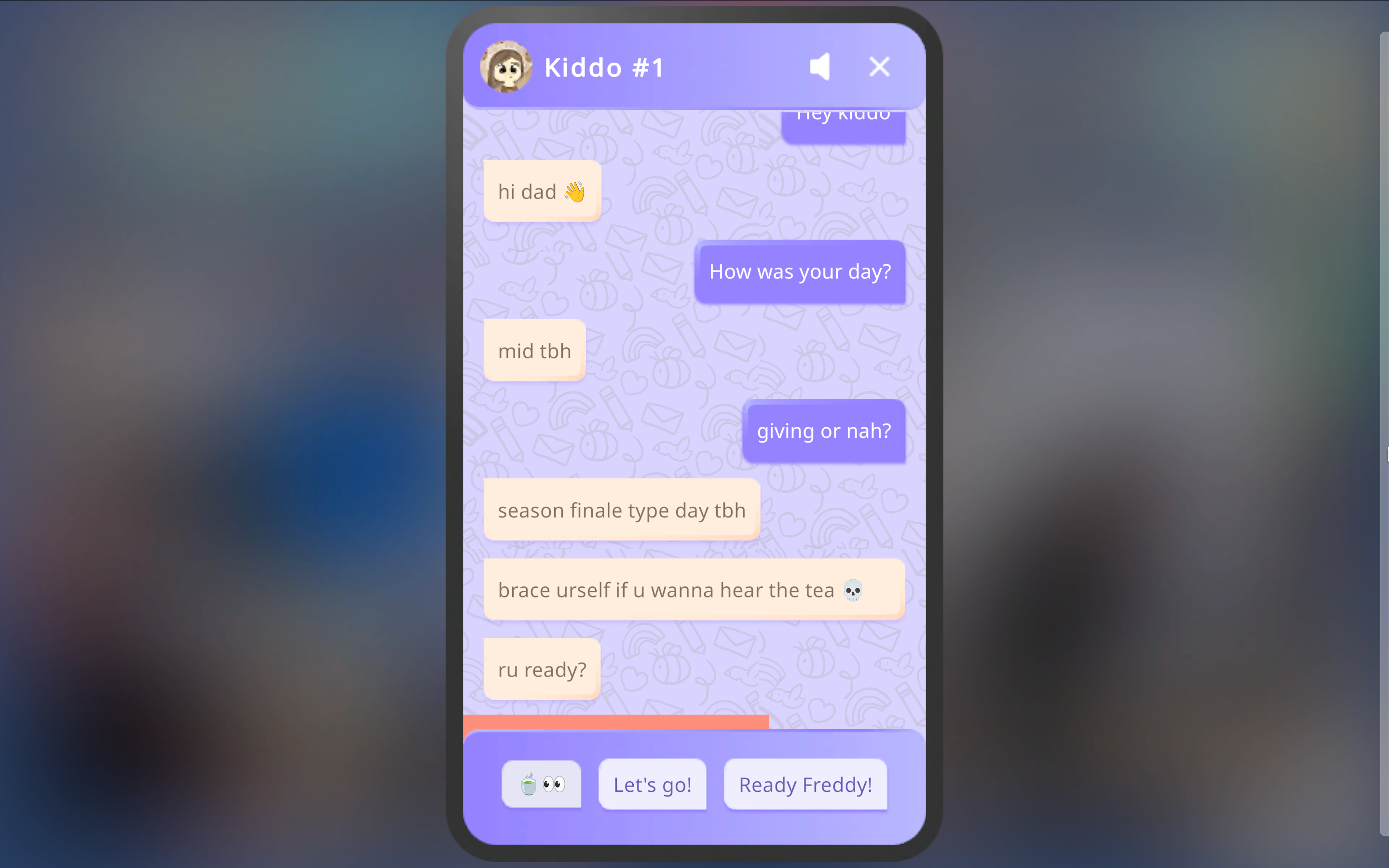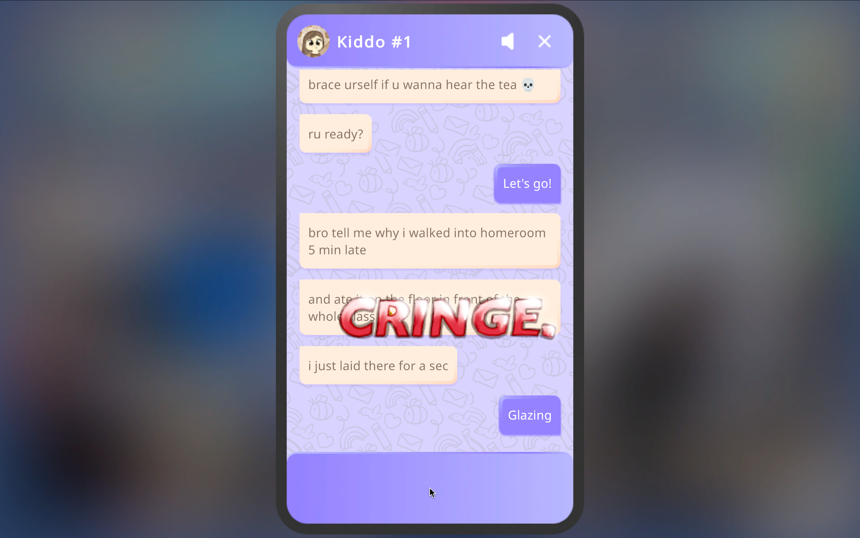 Glad you enjoyed it! There is a secret bad ending btw. Hint: as a parent you always win when you show up, cringe or not.